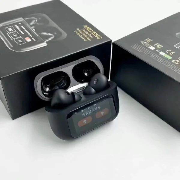 New A9 Airpods Pro 2nd Generation With Touch Screen Display 100% ANC / ENC Matte Black Bluetooth Earbuds